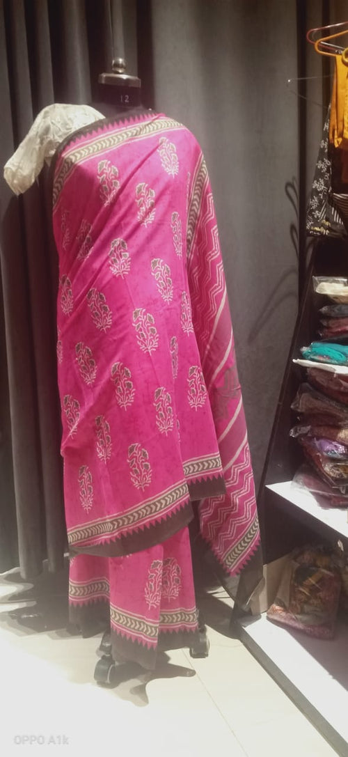 Batick print pink mulmul saree