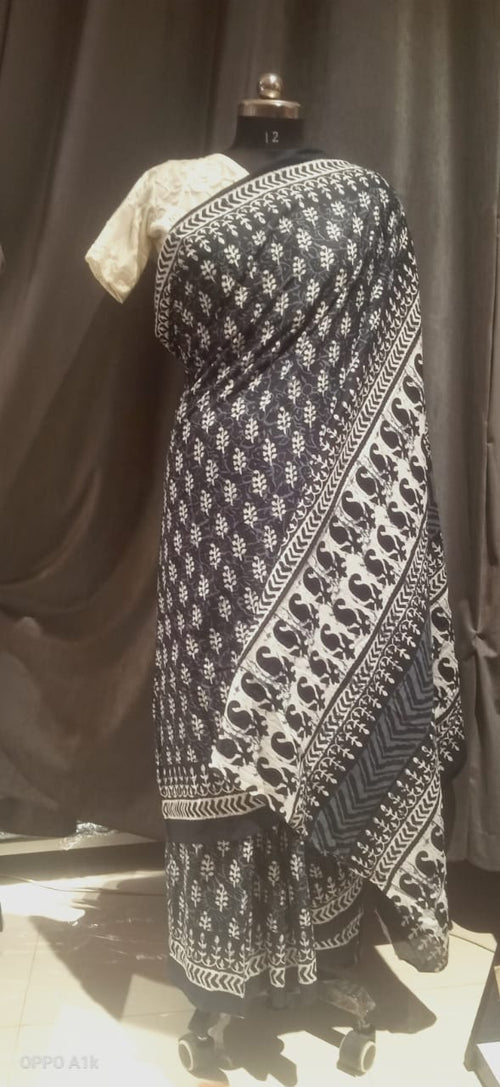 Black Bagh Print MulMul Saree